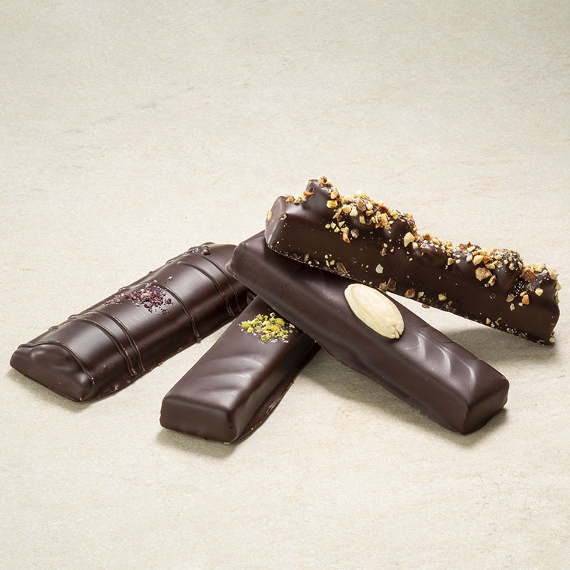 Her kan du vælge fra vort sortiment af chokoladestænger.